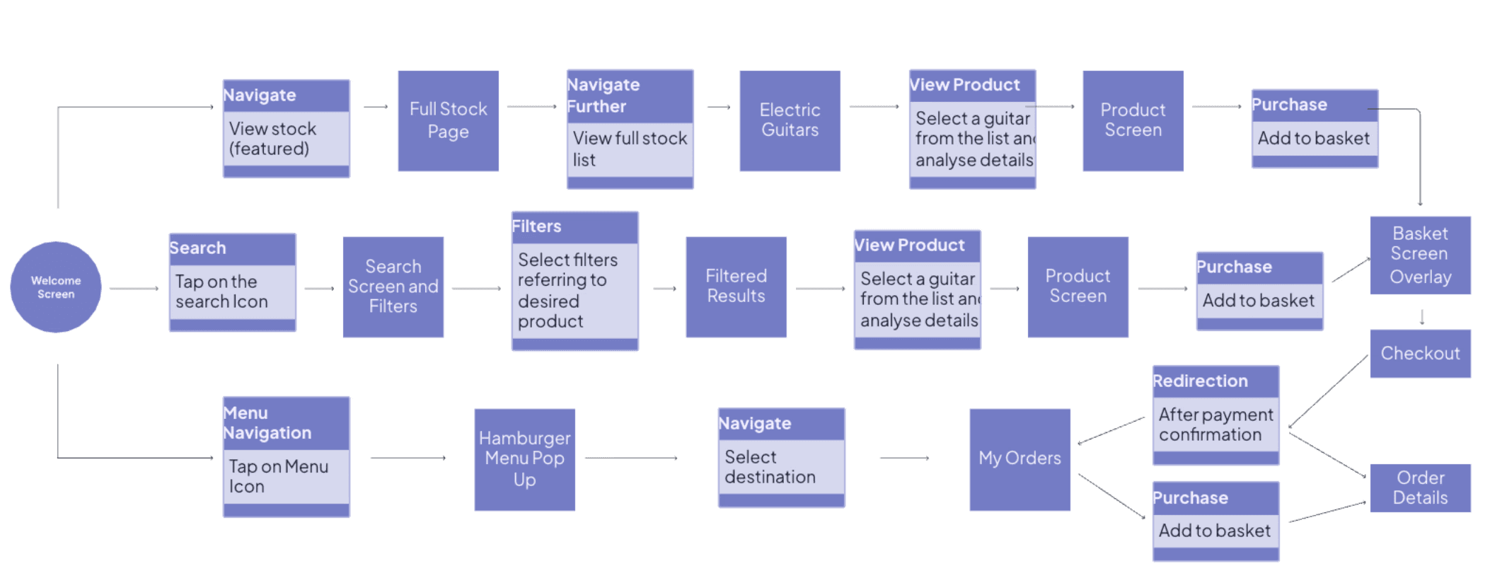 These low and mid-fidelity screens gave way to user testing and the consequential reiteration of the UI.