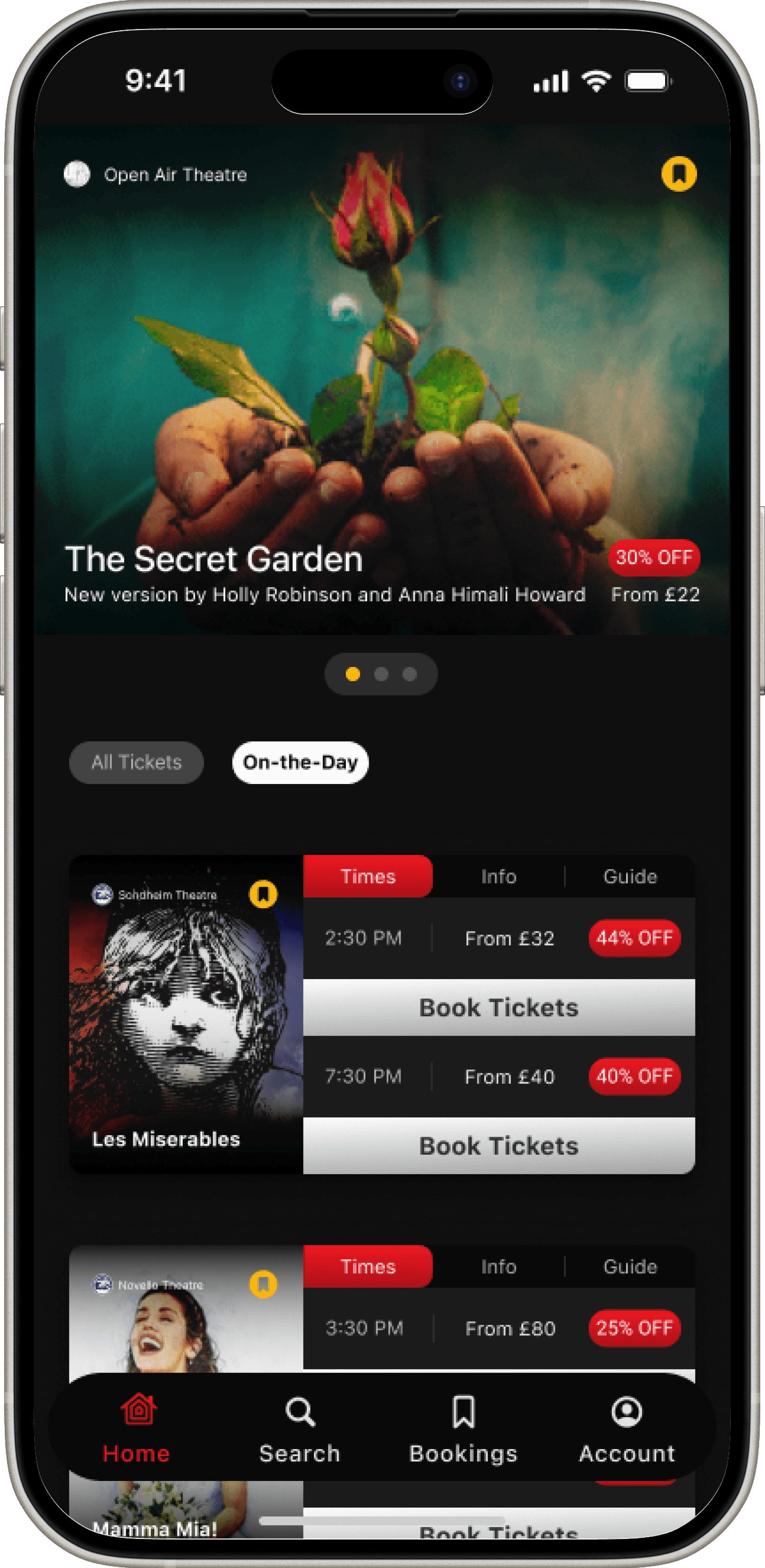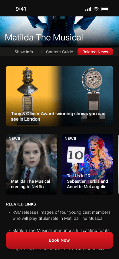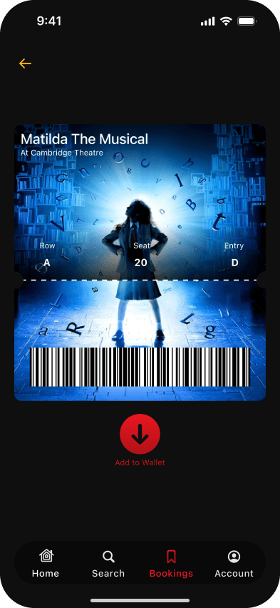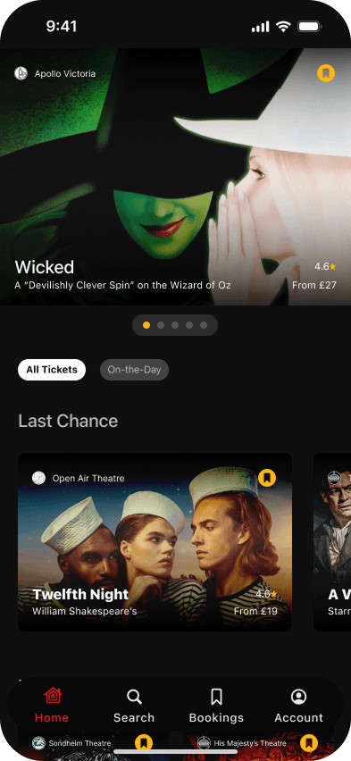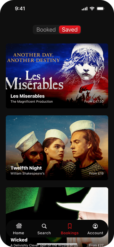 Single mobile app for all their theatre-related activities. A streamlined platform to manage bookings, save content, and view seats all in one place.